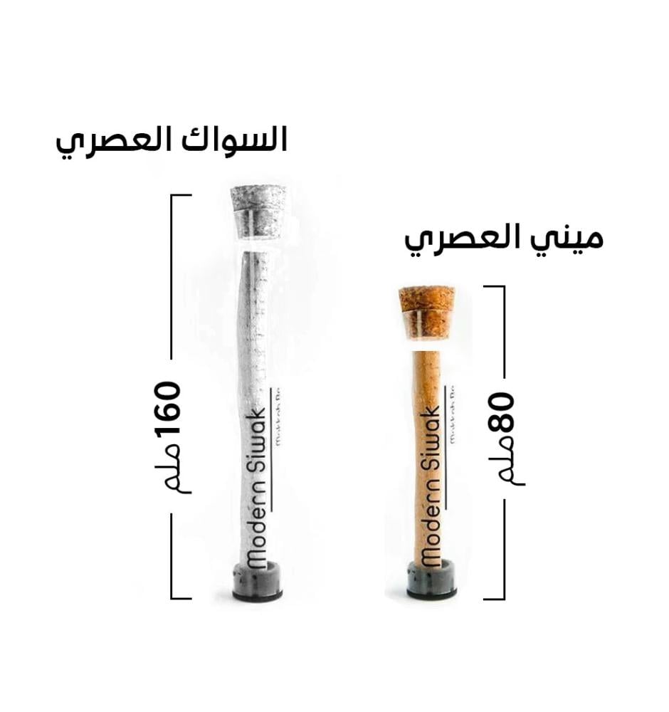 السواك العصري ميني هو النسخة الأقصر لحافظات السواك العصري ذات الشكل الأنيق، والتي تحتوي على عود أراك حار تم حصاده قبل عدة أيام فقط من مزارعنا في مكة المكرمة، الحجم الصغير لميني السواك العصري يجعله سهل الحمل والحفظ دون أن يشغل حيزا كبيراً في جيبك، كما أن غطاءه المحكم سيحمي ملابسك من التصبغات التي قد تنتج عن رطوبة المسواك.